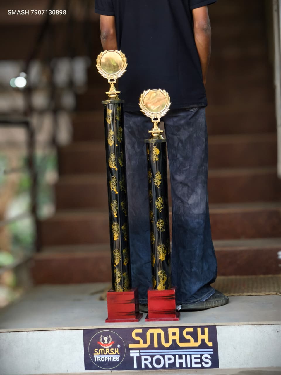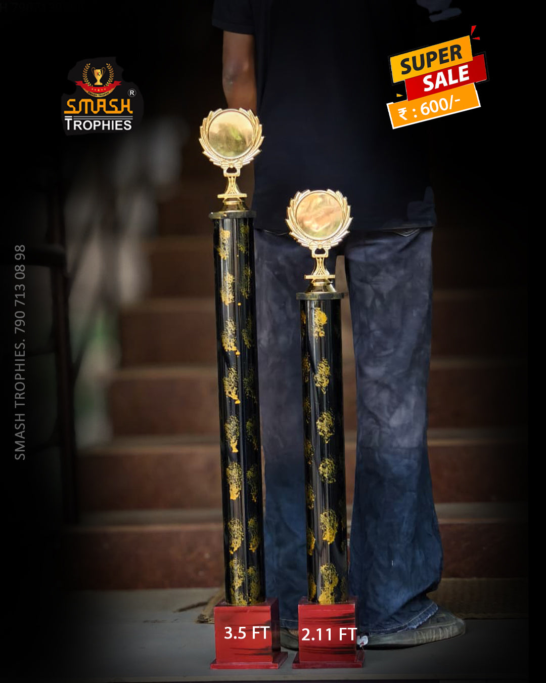 WINNER 3.5 FT RUNNER 2.11 FT BEST PLAYER This is PLASTIC trophy and the base is wooden material..