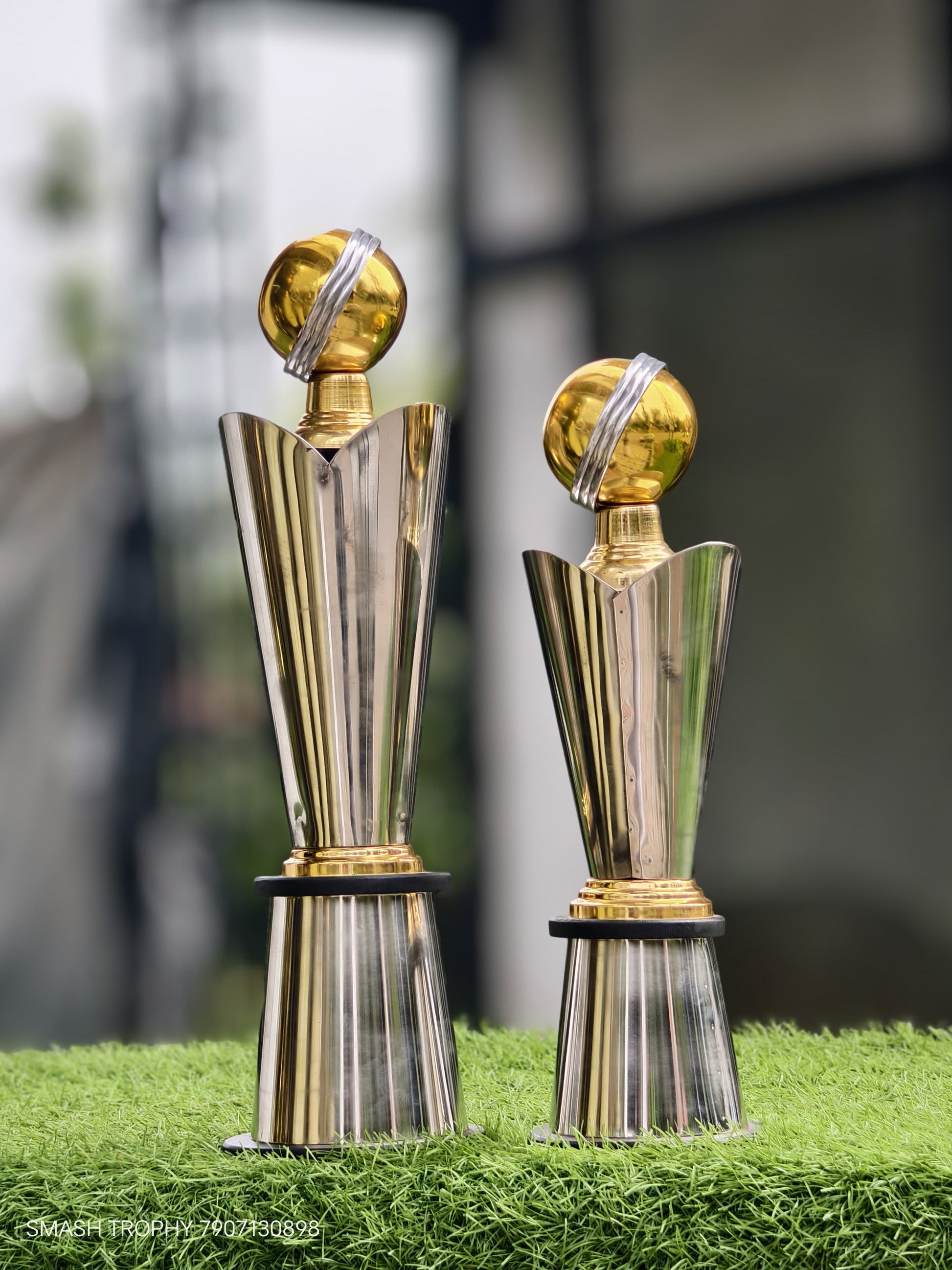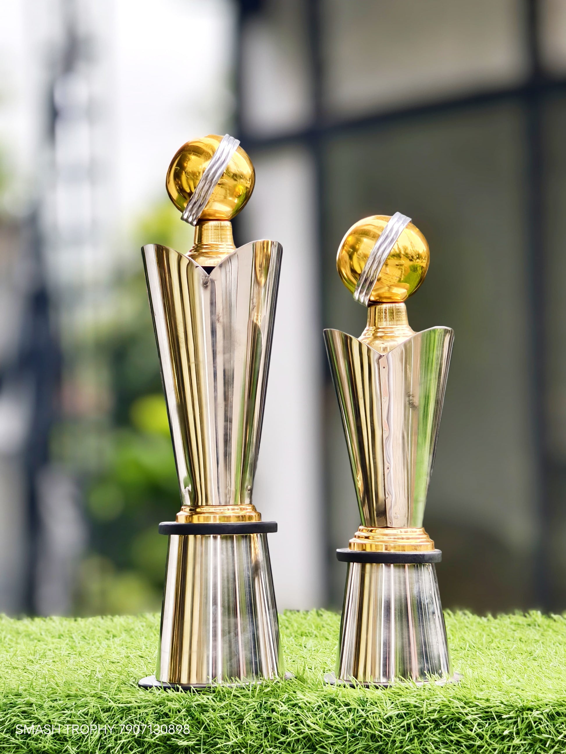 Trophies are made of steel, and their base is made of wood