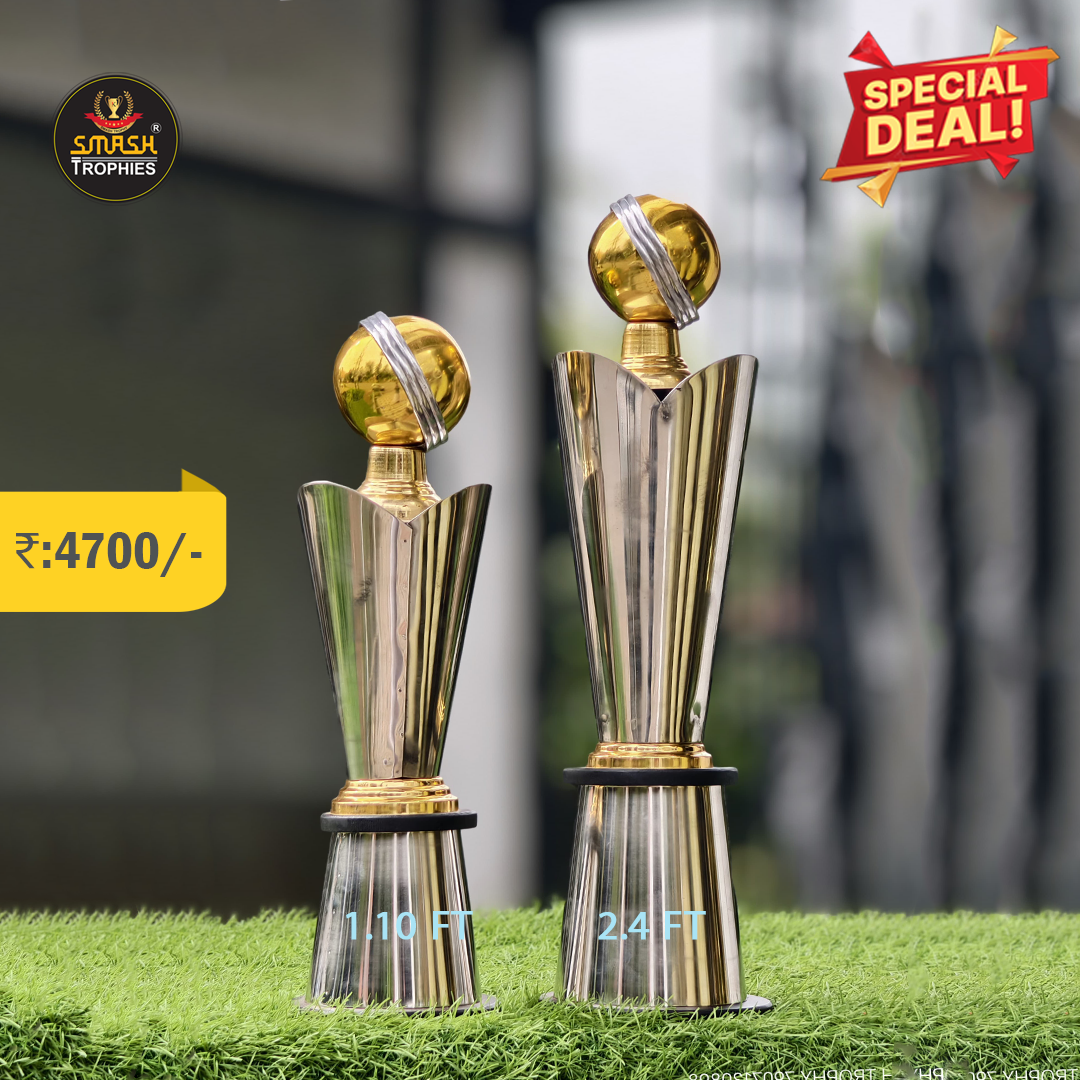 Trophies are made of steel, and their base is made of wood