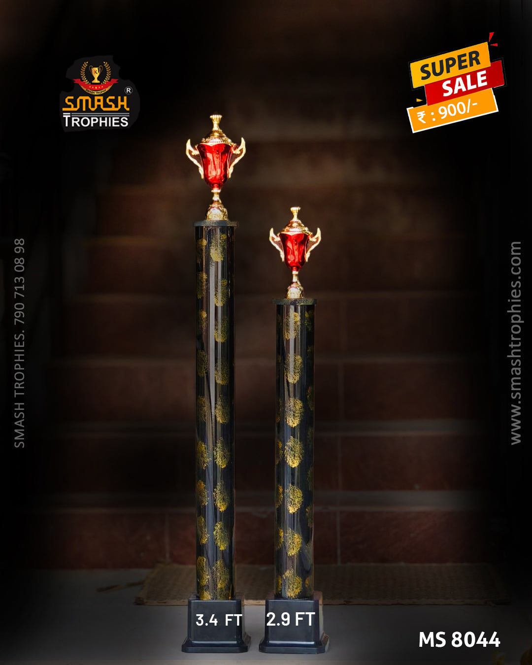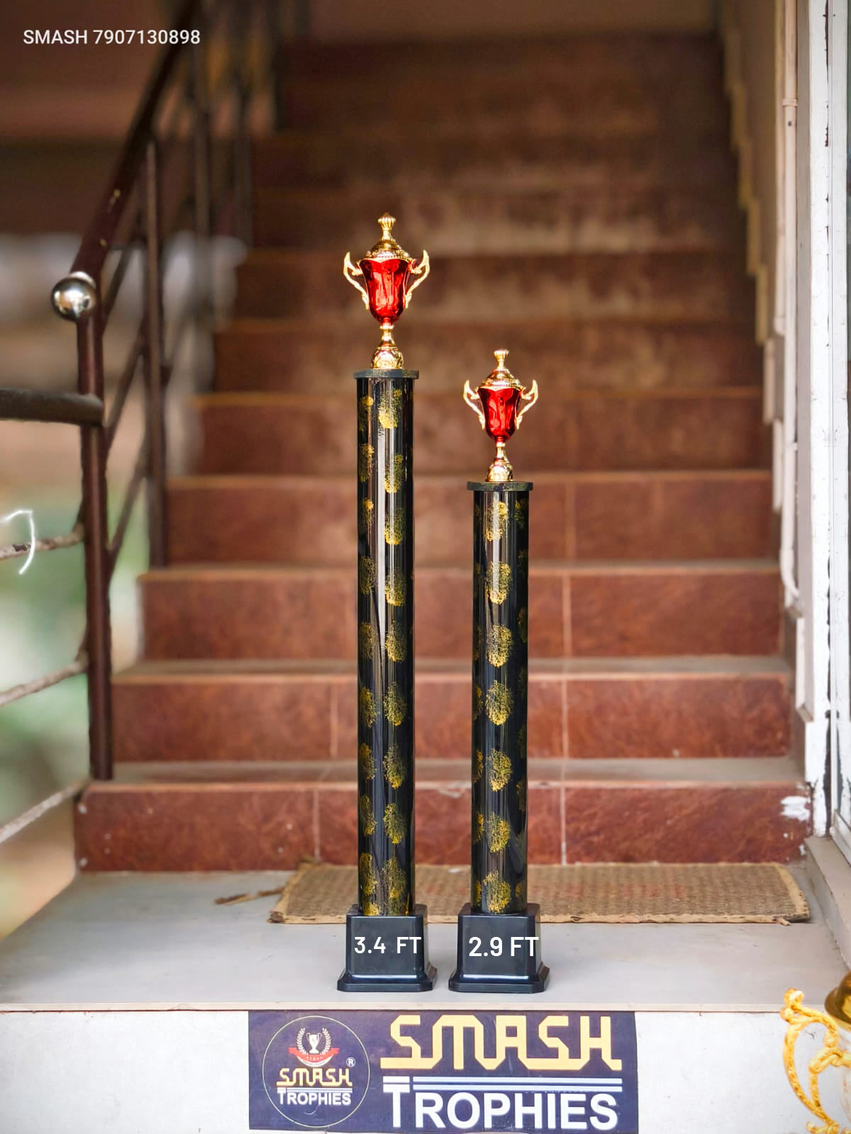 WINNER plastic trophy set featuring a 3.4-foot runner figurine paired with a 2.9-foot complementary piece. Originally valued at ₹1,400, now available at the special promotional price of ₹900. An excellent choice for recognizing athletic achievement and competitive excellence at tournaments, sports events, and championship celebrations.