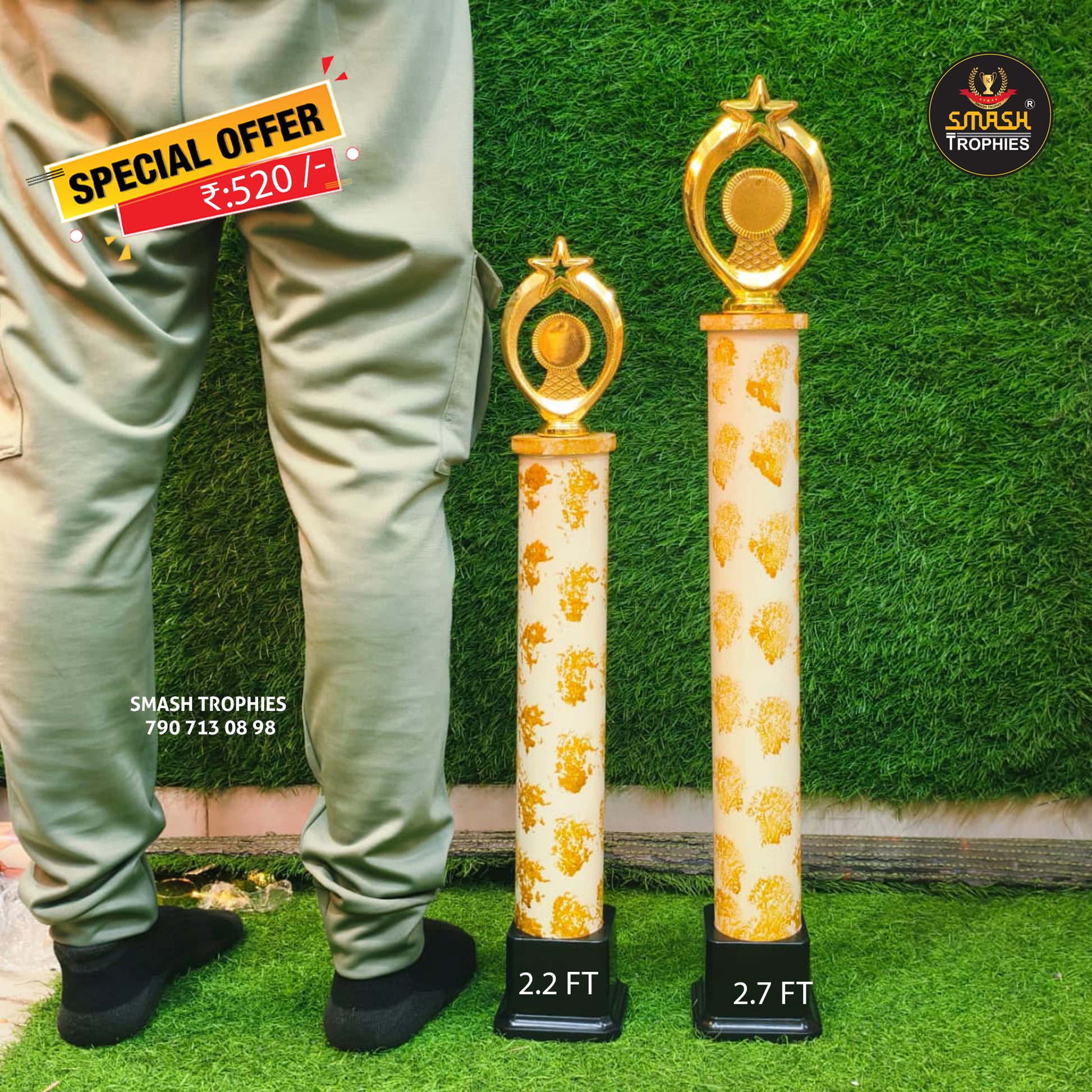 This offering features two trophies: a 2.7 ft winner’s trophy and a 2.2 ft runner-up trophy, available at a special price of 520.