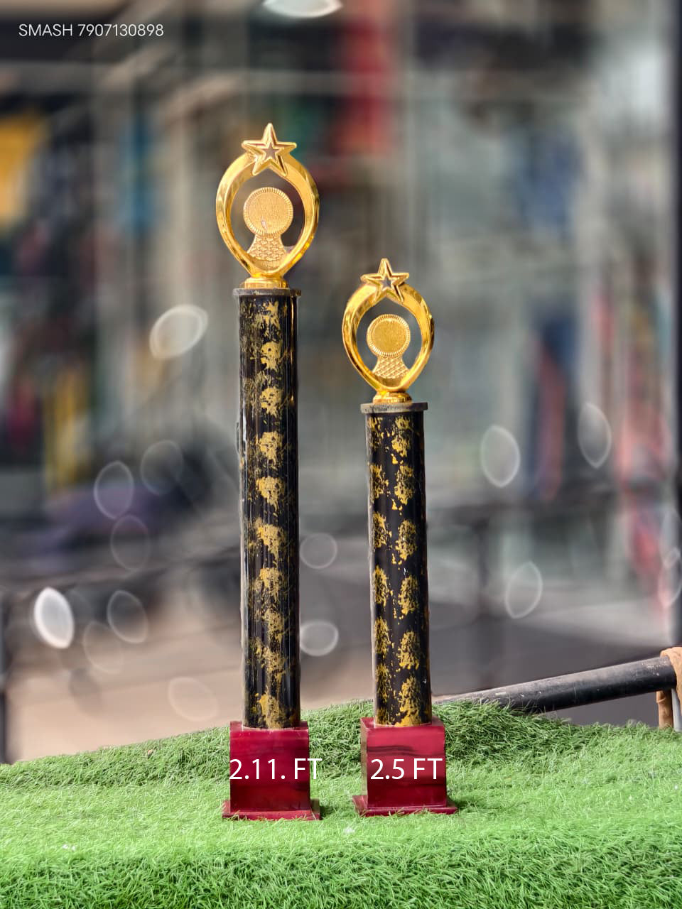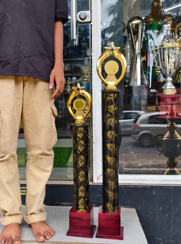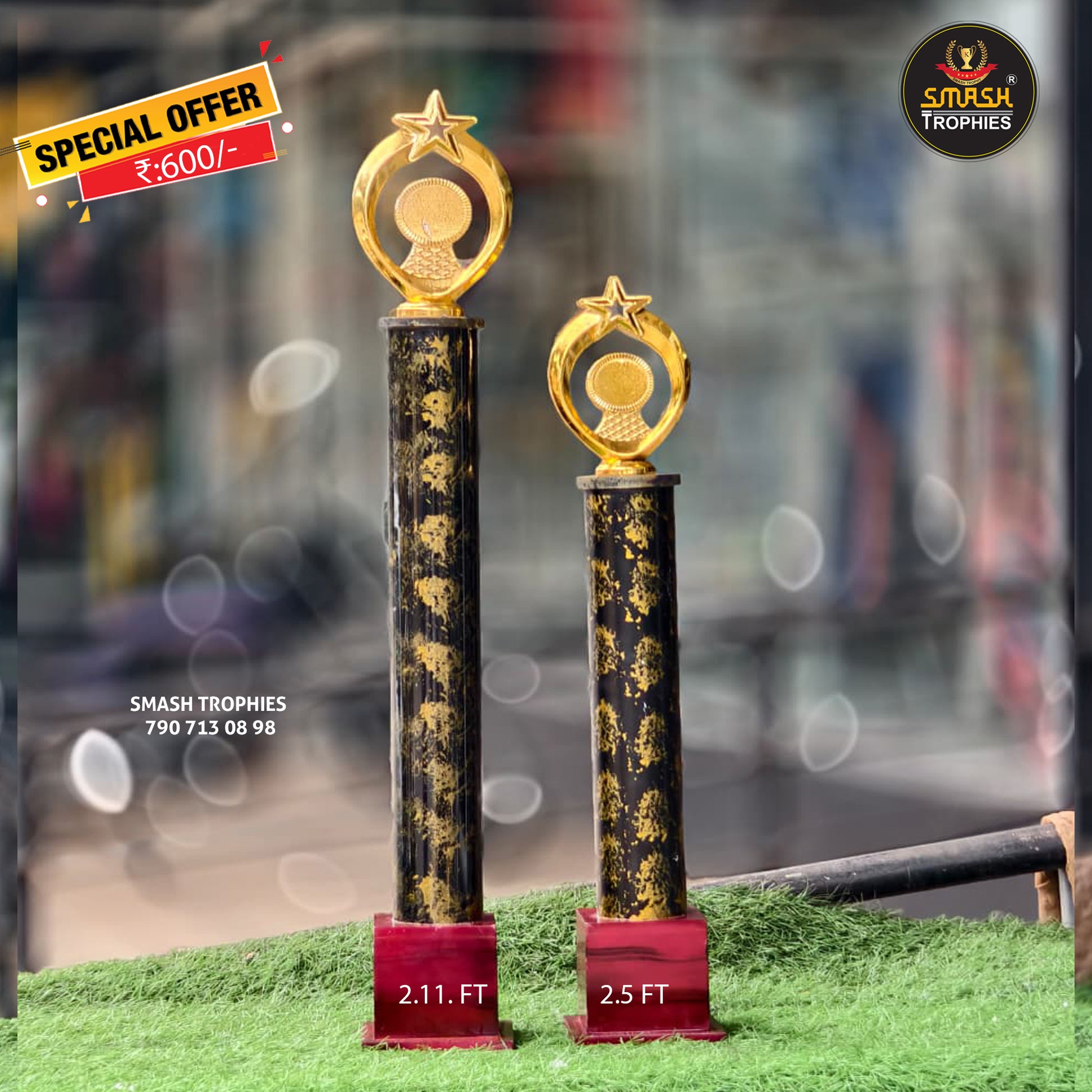 This offering features two trophies: a 2.11 ft winner’s trophy and a 2.5 ft runner-up trophy, available at a special price of 600.