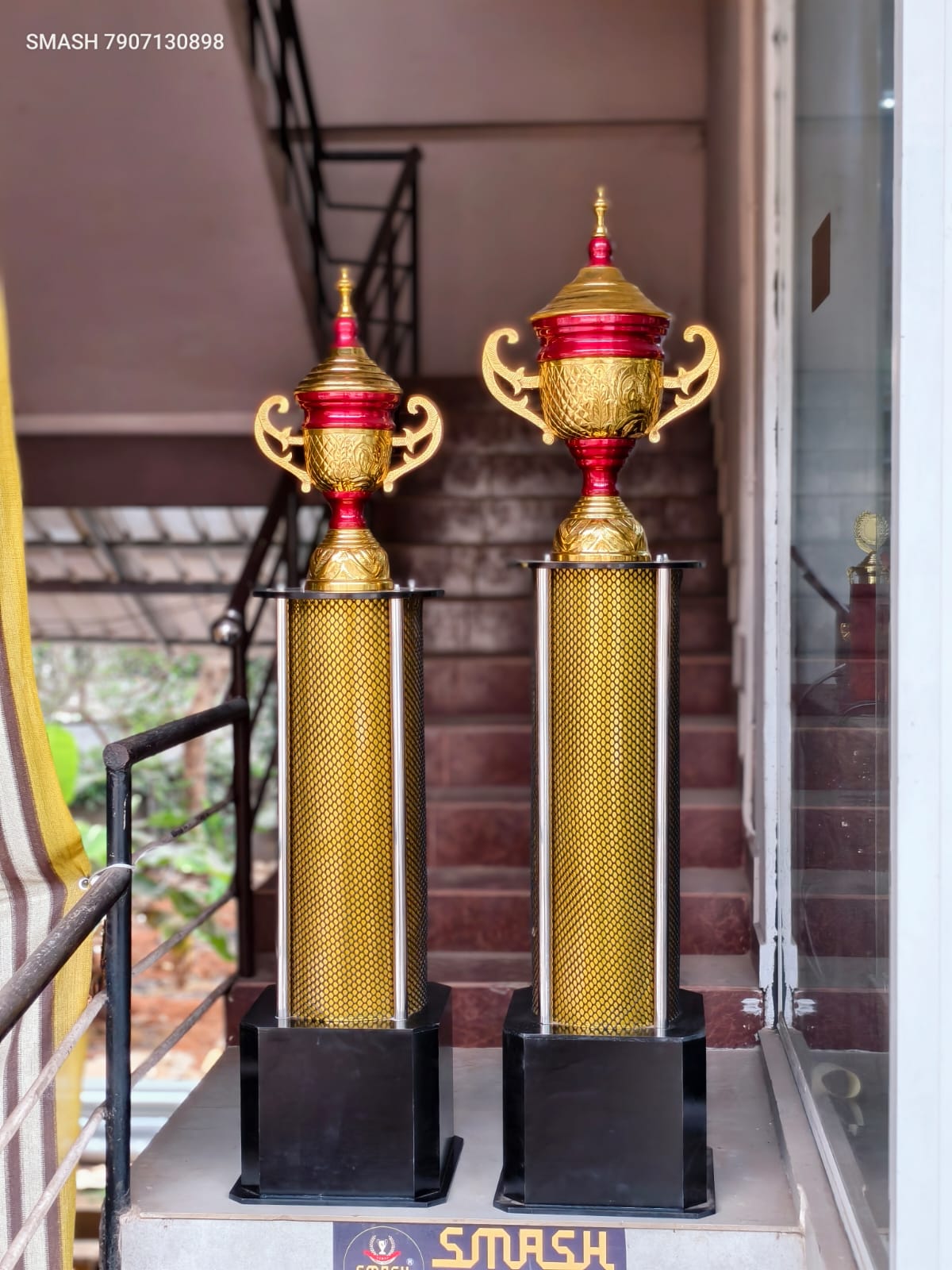 Elevate your recognition program with this distinguished metal trophy featuring a solid wooden base. Standing at an impressive 6 feet for champions and 5.5 feet for runners-up, this piece combines premium craftsmanship with timeless elegance. The robust metal construction paired with natural wood creates a sophisticated aesthetic suitable for corporate events, sports competitions, and achievement ceremonies. An exceptional value at ₹8,900, this trophy delivers professional-grade quality that honors accomplishments with lasting impact.