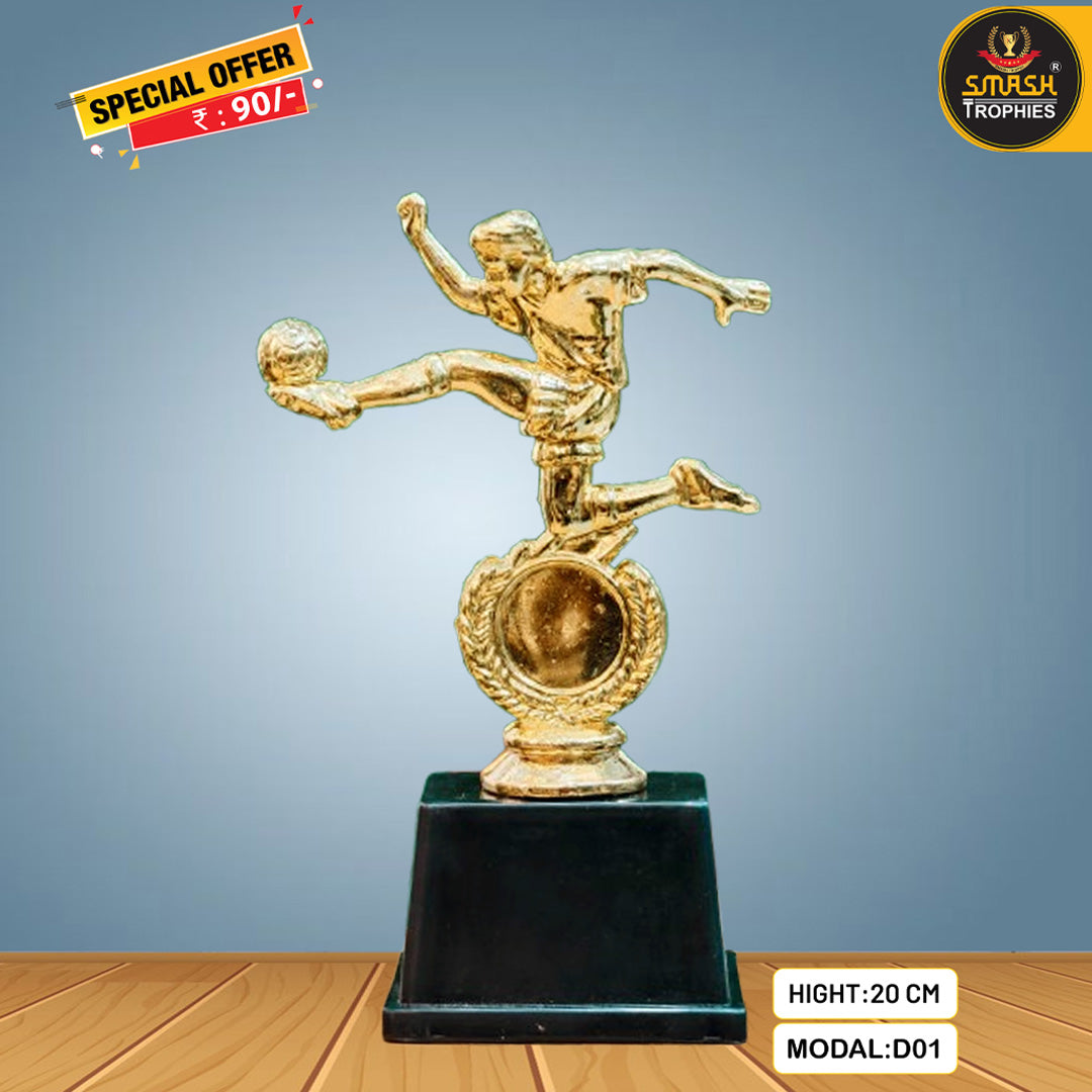 This football trophy, standing 20 cm tall, is designed to honor the best player. Crafted from durable plastic, it offers a reliable and stylish award option.