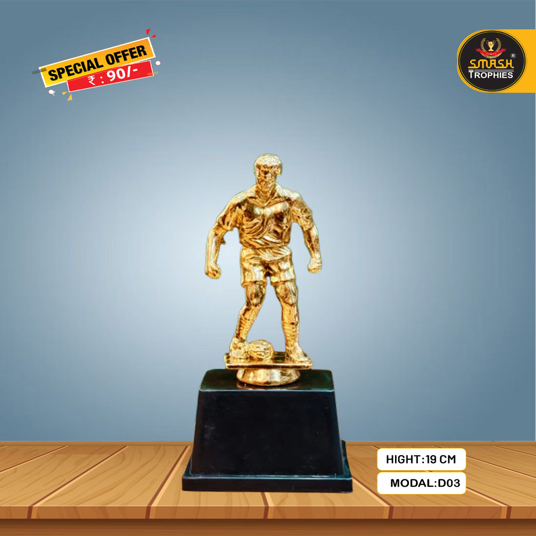 This football trophy, standing 19 cm tall, is designed to honor the best player. Crafted from durable plastic, it offers a reliable and stylish award option.