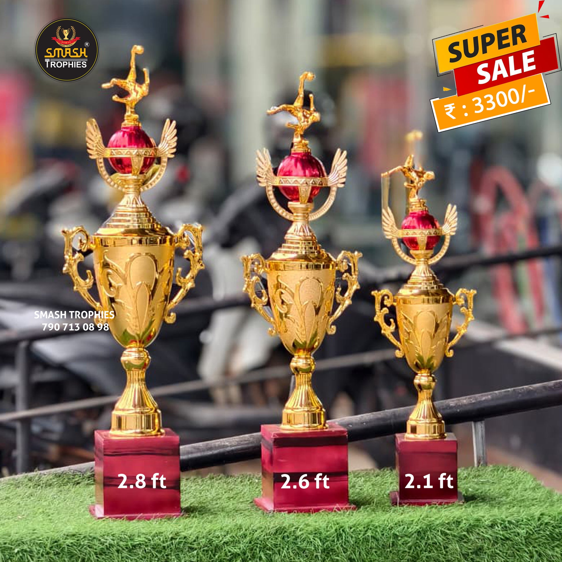 Ideal for recognizing achievement across multiple categories, this trophy set features three distinct heights to honor winners, runners-up, and third-place finishers. The 2.8 ft winner's piece commands attention, complemented by a 2.6 ft runner-up trophy and 2.1 ft third-place award. Perfect for competitions, sports events, or corporate recognition programs, this tiered collection delivers professional presentation at an exceptional value. Comprehensive recognition made accessible.
