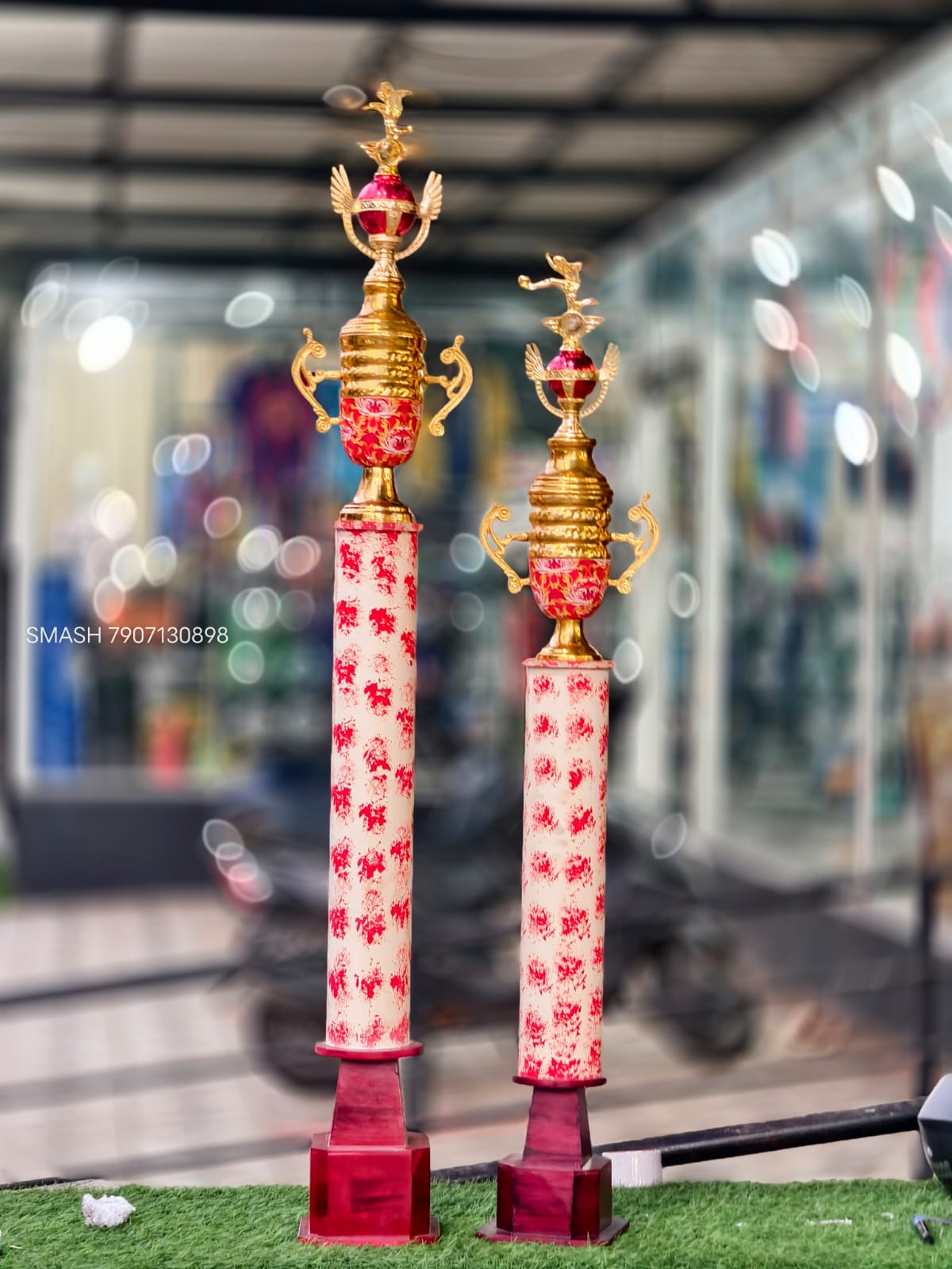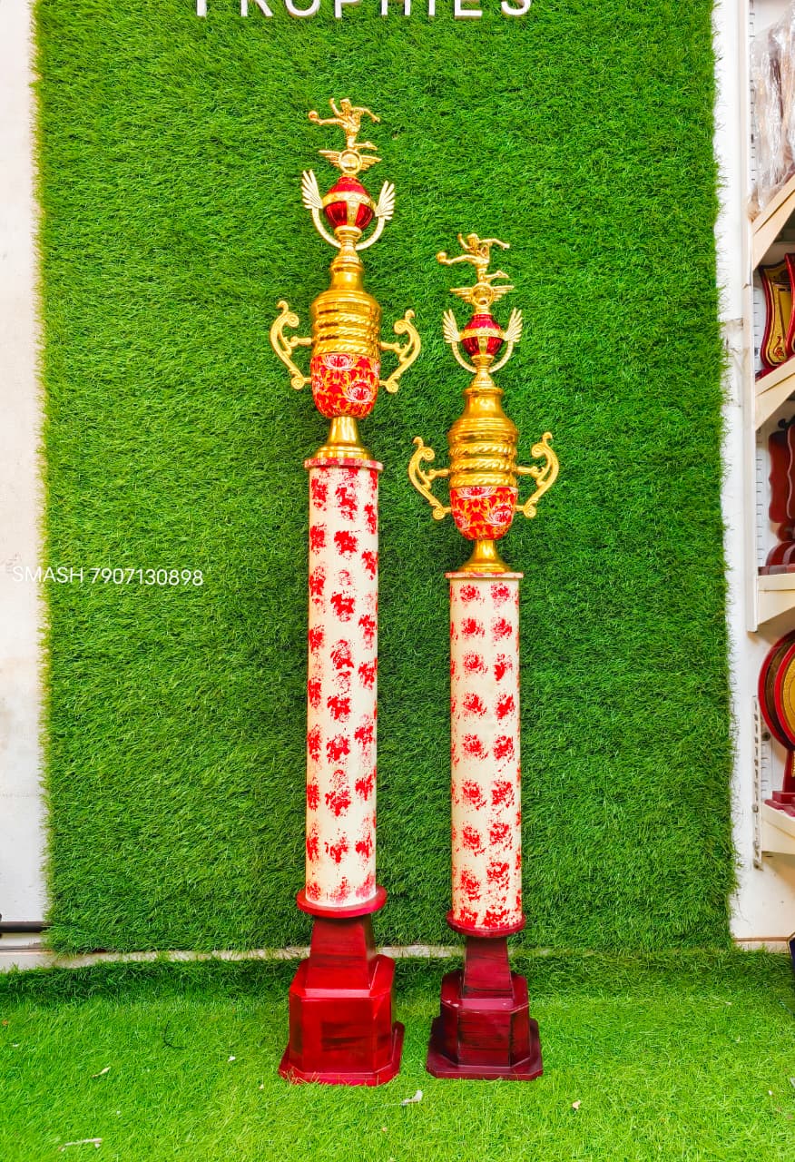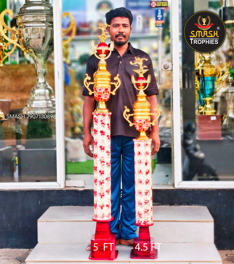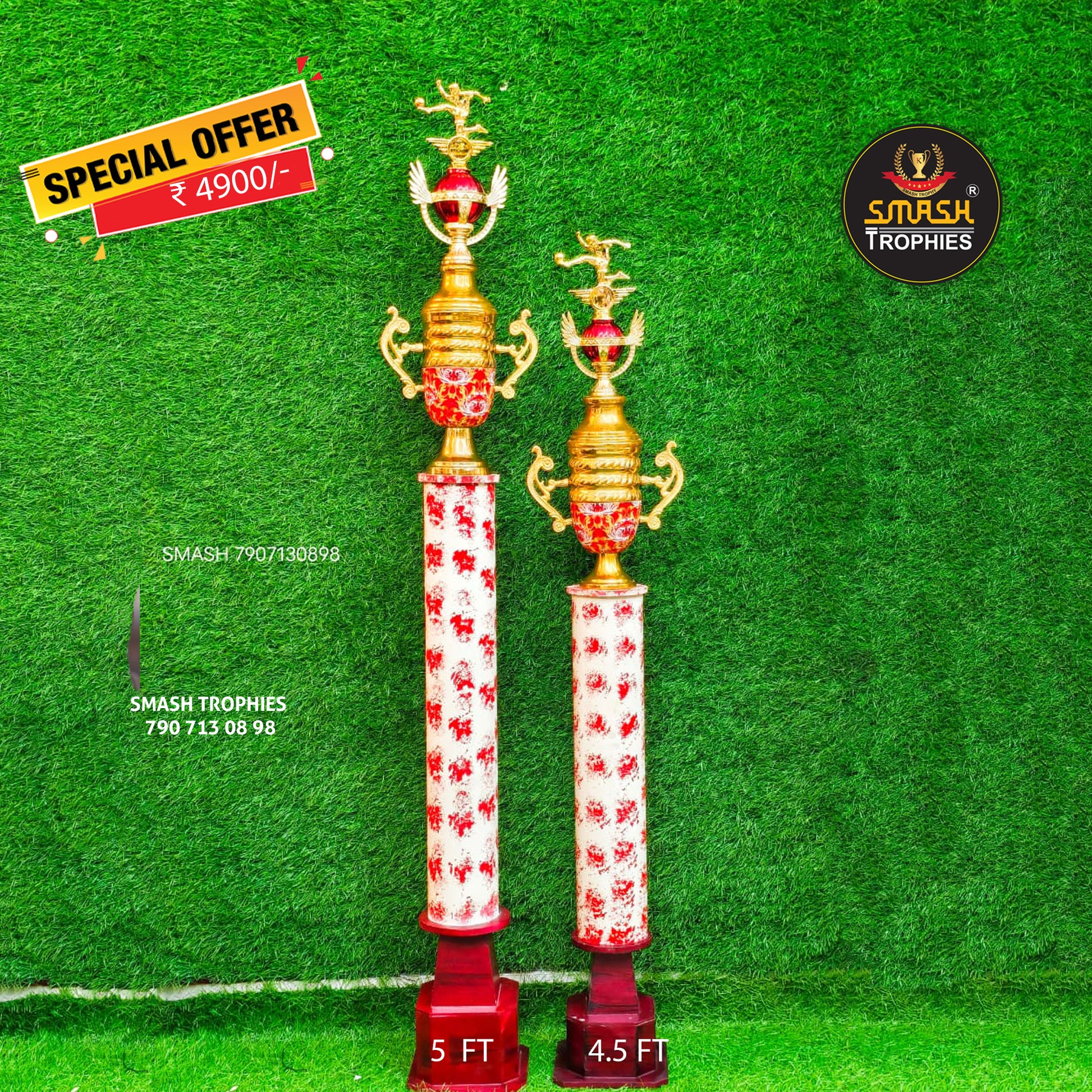 This metal trophy set includes a 5 ft winner trophy and a 4.5 ft runner-up trophy. Originally priced at 8,500, it is now available for 4,900. Crafted with premium quality materials, these trophies represent excellent value.