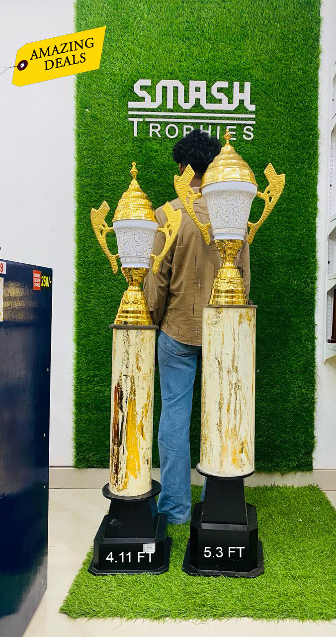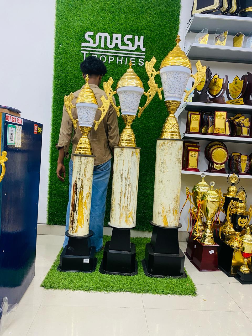 ഇത് മെറ്റൽ ട്രോഫിയാണ്, അടിഭാഗം മരം കൊണ്ട് നിർമ്മിച്ചതാണ്,